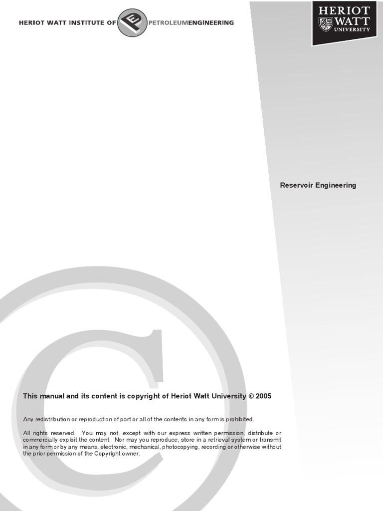 Unknown 2005 Reservoir Engineering This Manual And Its Content Is Copyright Of Heriot Watt University C 2005 Pdf Oil Reserves Industries