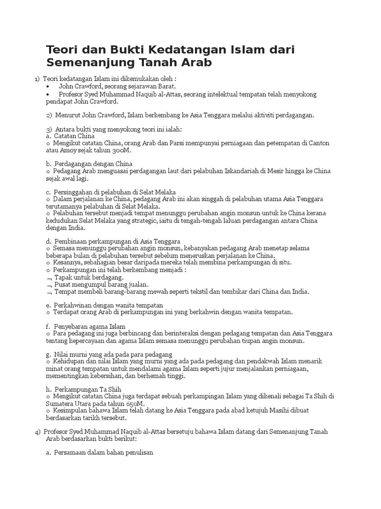 Doc Teori Kedatangan Islam Ke Tanah Melayu Muhammad Khairi Academia Edu