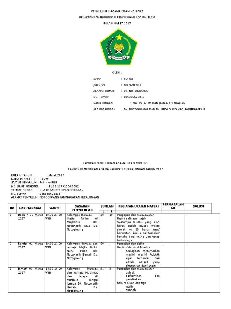 Contoh Laporan Bulanan Penyuluhan Agama Islam Husnuls492 Com